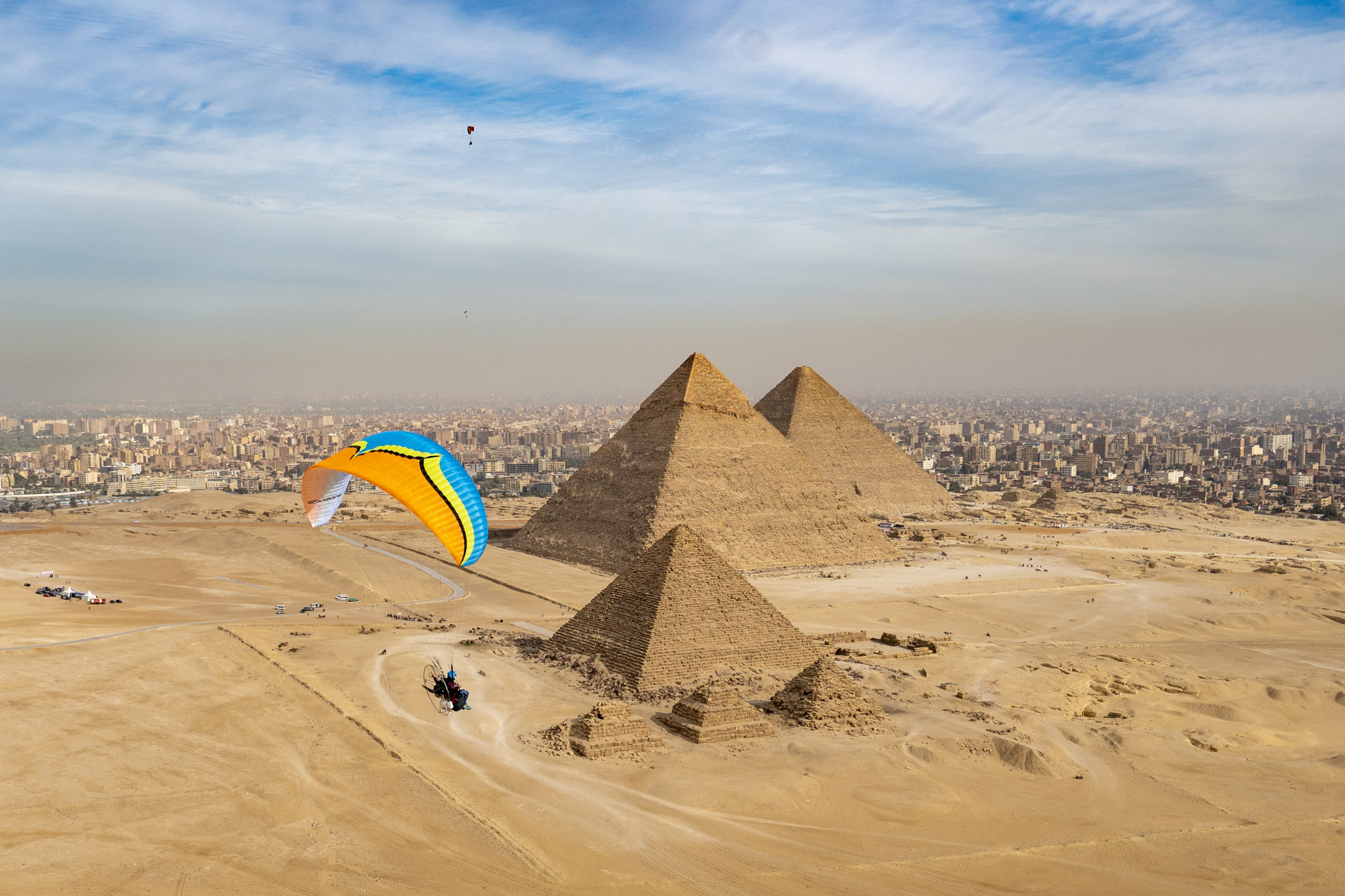 Fly across Egypt’s most iconic landscapes on this once-in-a-lifetime paramotor expedition. From unforgettable flights over the Great Pyramids of Giza and Saqqara to desert adventures and camping in Fayoum, this journey blends aviation, history, and adventure. Continue flying above the ancient wonders of Luxor before finishing with spectacular paramotor flights over the crystal-clear waters of the Red Sea. A rare opportunity to experience Egypt from the sky like never before.