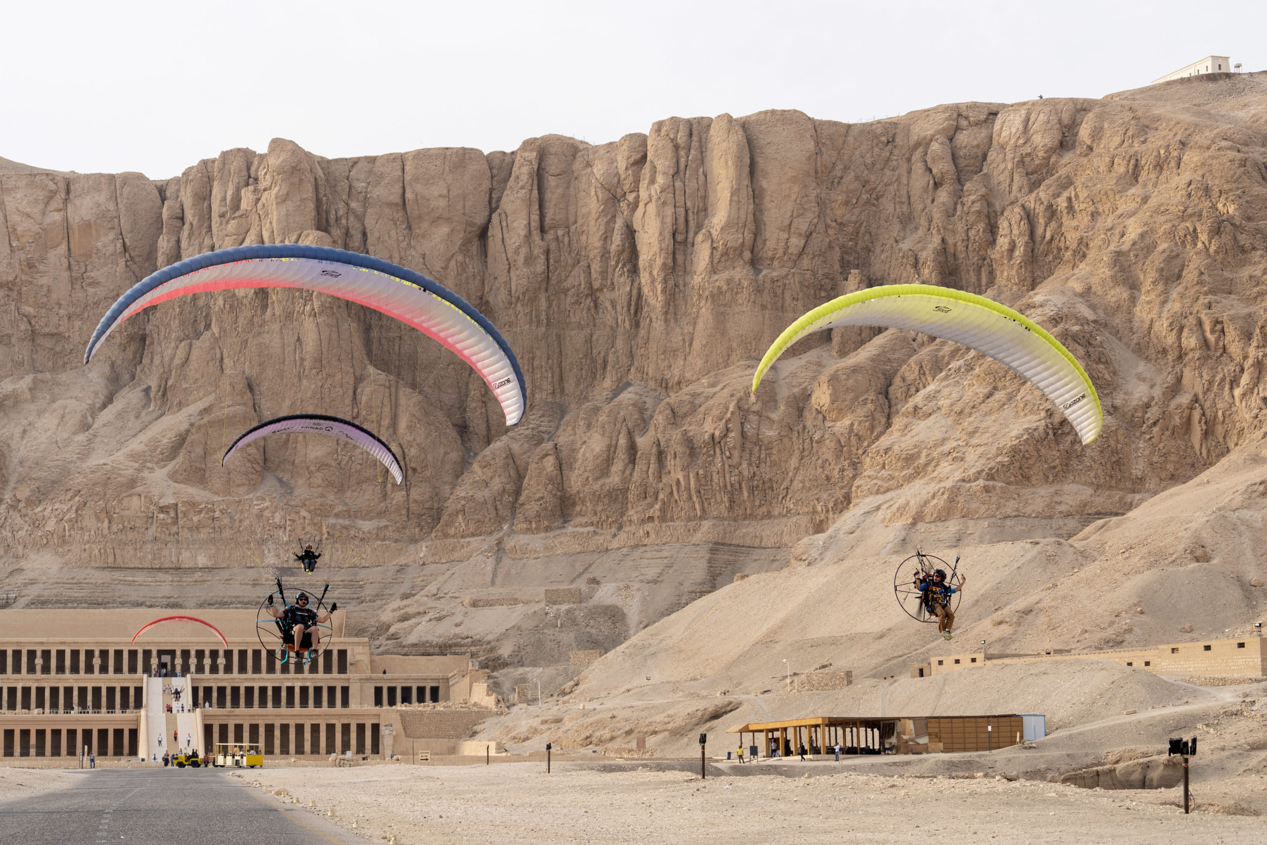 In Luxor, multiple paramotor flight days allow you to fly above ancient temples, the Nile Valley, and surrounding landscapes. These flight days are combined with sightseeing, giving you the opportunity to explore Luxor’s historic sites while enjoying exceptional flying conditions.